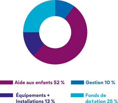 Permet à la fondation d’intégrer des jeunes défavorisés dans toutes les activités du Centre sablon et du P'tit Bonheur. En fonction de la situation familiale, l’aide financière peut couvrir jusqu’à 95 % des frais d’activités des enfants.